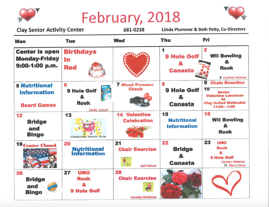 February 2012 Seniors Calendar