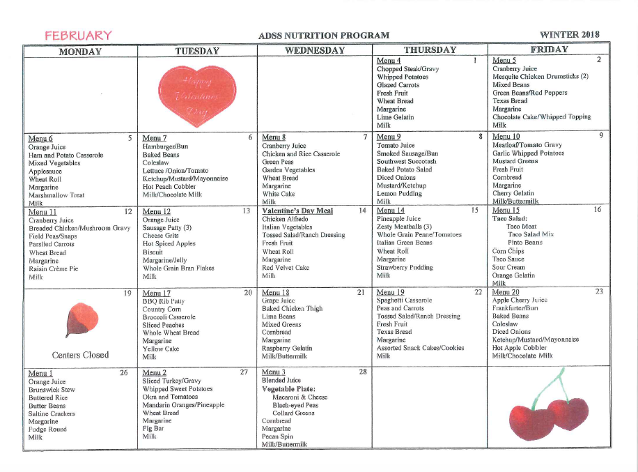 February 2018 Menu