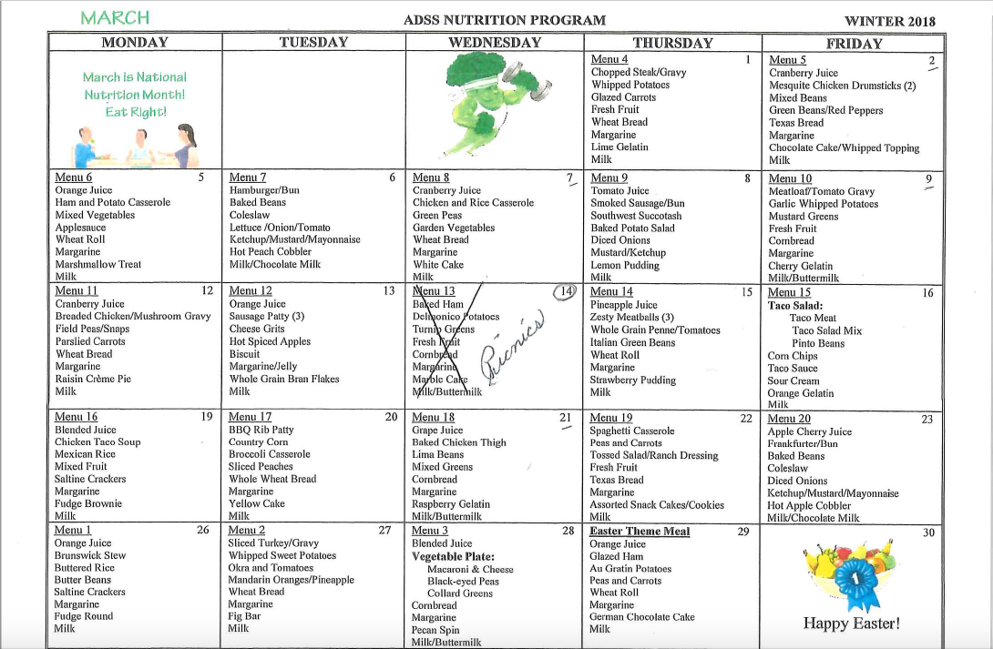 March 2014 Seniors Calendar & Menu