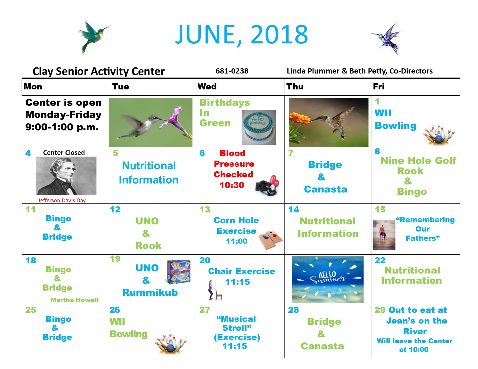 June 2015 Seniors Calendar & Menu