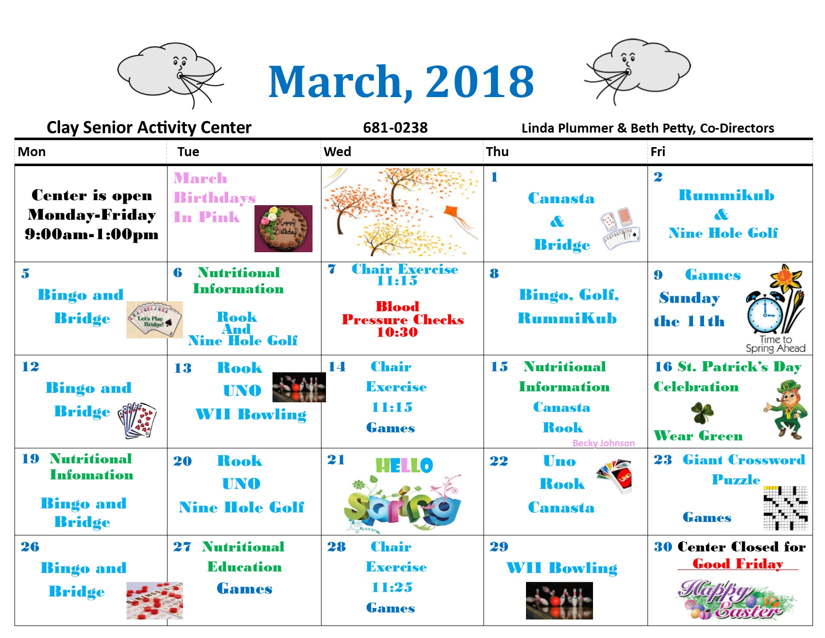 March 2016 Seniors Calendar
